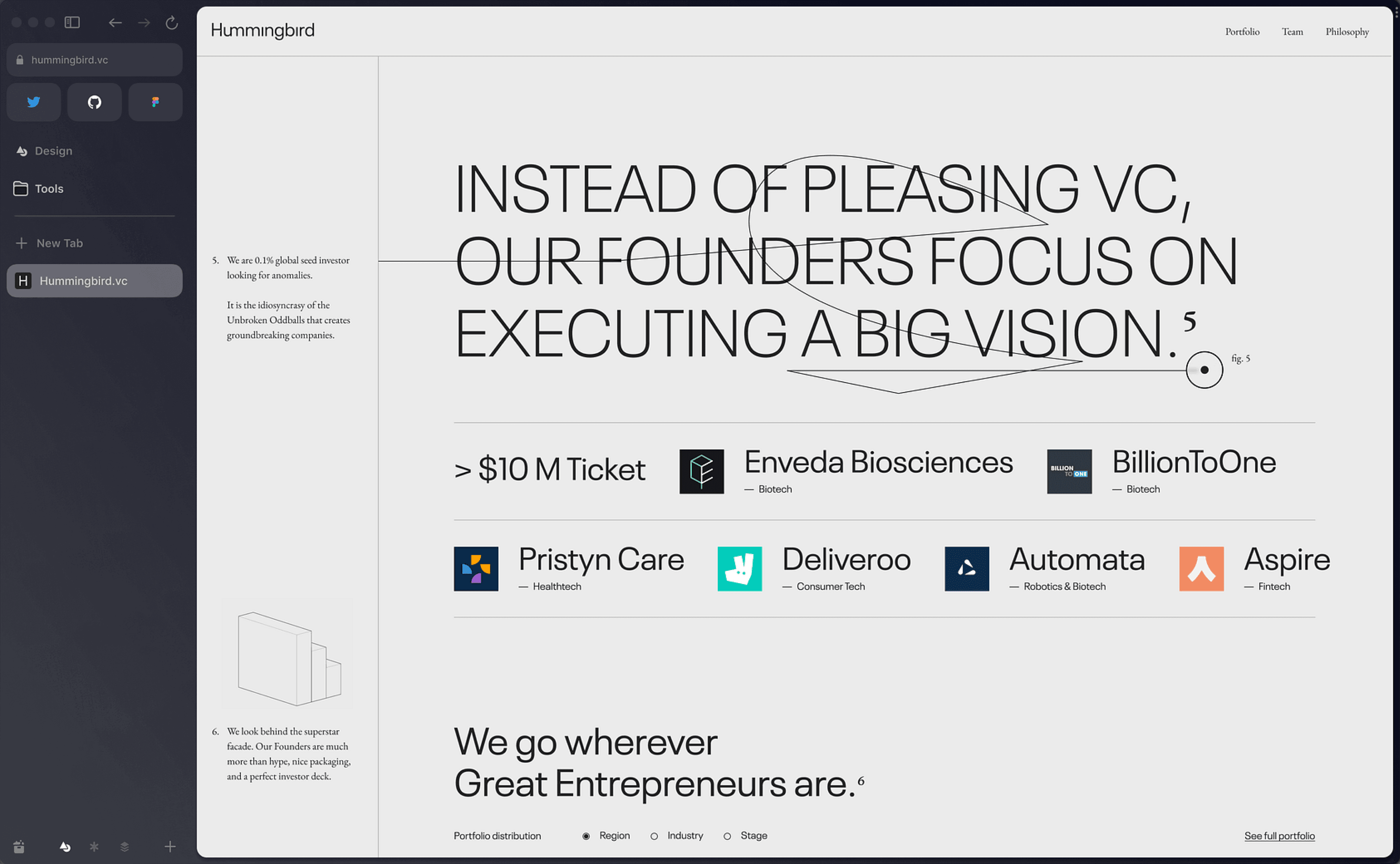 We focus on product design with FinTech companies and craft online presence for Venture Capital firms.